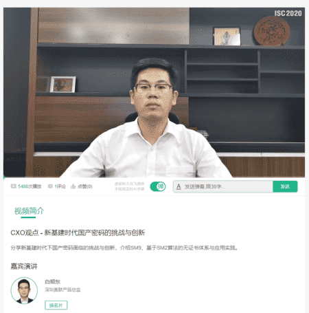 ISC 2020首次采用“万人在线”的云会议形式,聚焦数字孪生时代下的新安全。打造囊括多个重磅主题日、百余个安全峰会论坛、海量精华议题,以及众多特色环节的网安饕餮盛宴。多国顶级安全智囊,百余家领先安全企业机构云聚于此,共同开启巅峰对话! 奥联作为密码领域的优势企业,应邀参加ISC2020“第八届互联网安全大会”。在ISC 2020“云展馆”中有奥联展位和安全业务介绍,综合展示了奥联安全服务能力和基于国密算法的安全产品及解决方案。在特色栏目“CXO观点”中,奥联产品总监白顺东做《新基建时代国产密码的挑战与创新》主题演讲,详细介绍了SM9算法和高效无证书密码系统ECS在新基建领域的应用实践。